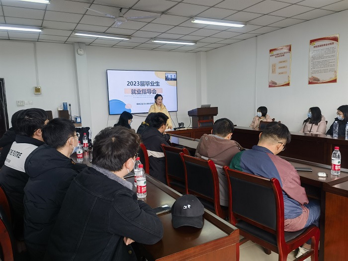 3月1日下午,acg盒子 召开2023届本科毕业生考研复试暨就业推进会。院党总支副书记高荣、毕业班辅导员李清月及全体毕业生参加会议。